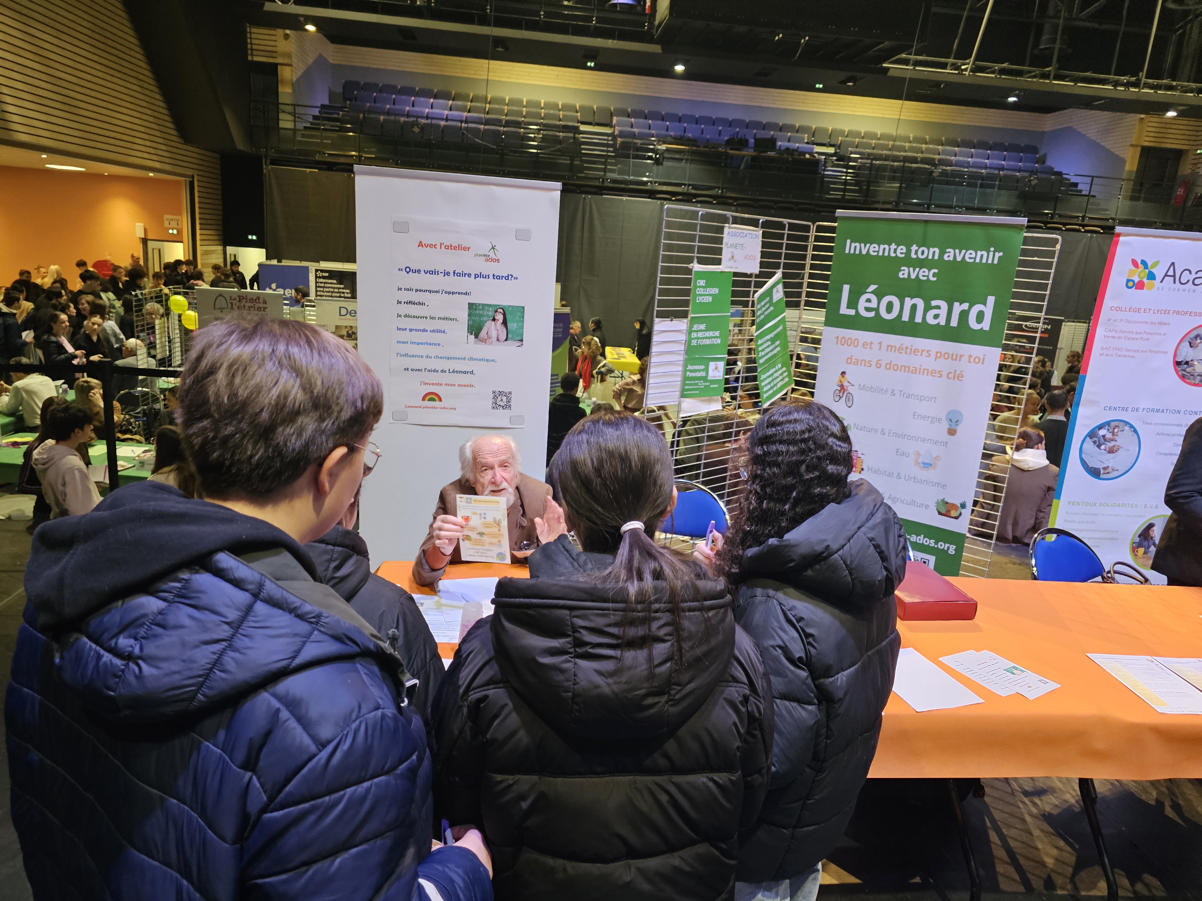 Excellente initiative intercommunale en direction des collèges et du lycée. Nous avons reçu à notre stand Planète-Ados : 46 collègiens, 34 lycéens, 3 jeunes de 20 ans en recherche de formations qui ont découvert Léonard , compris son importance et le sens de sa conception. Nous avions tissé des liens avec les représentants de 4 organismes : mission locale, E2C et 2 organismes d’insertion et de retour à l’emploi. Un professeur et un responsable d’établissement du secondaire ont découvert et apprécié nos outils et souhaitent les faire connaître et se proposent de les utiliser. La nouvelle présentation de de l’atelier leur a été remise. La forme « atelier philo » est mise en avant.